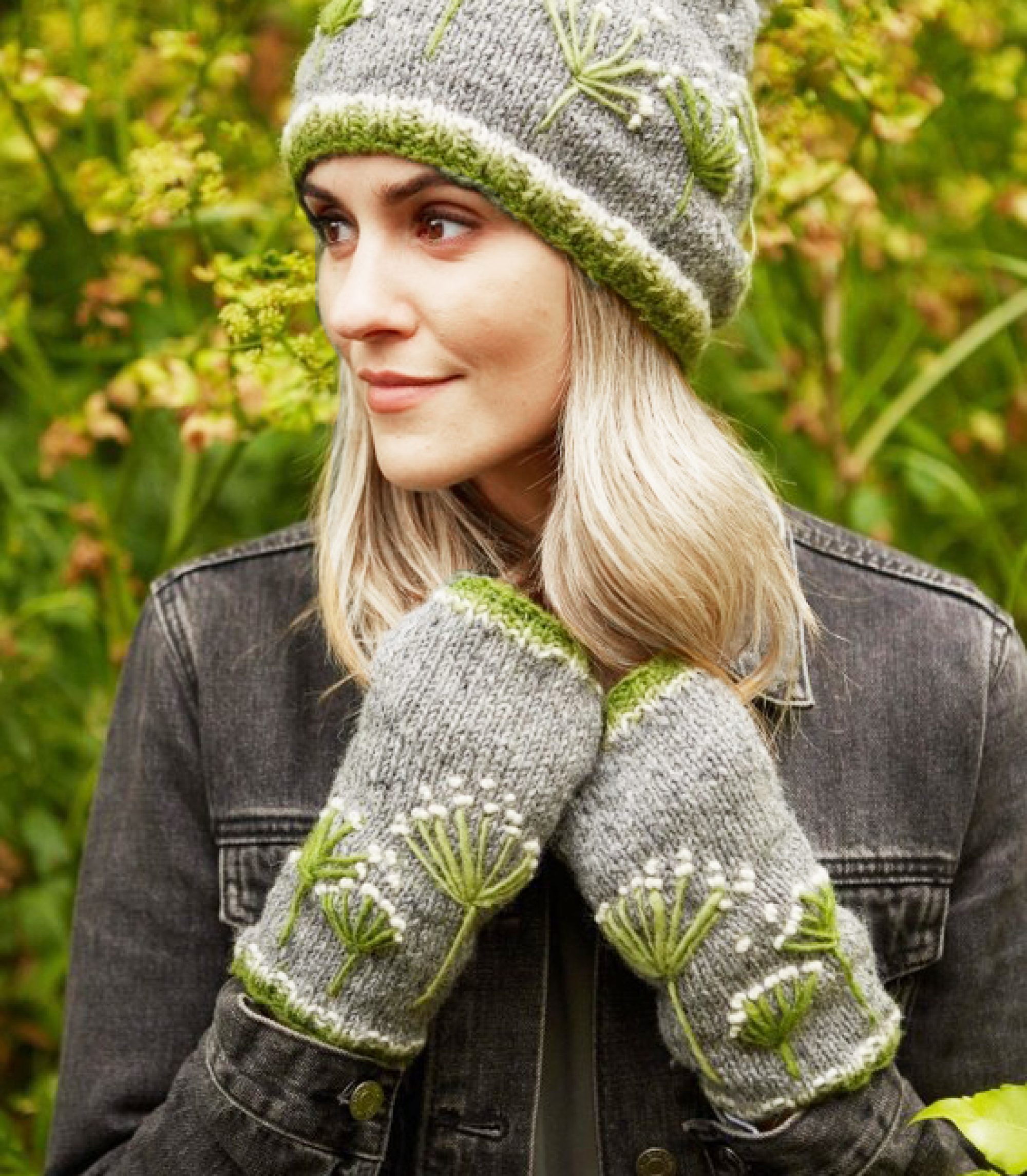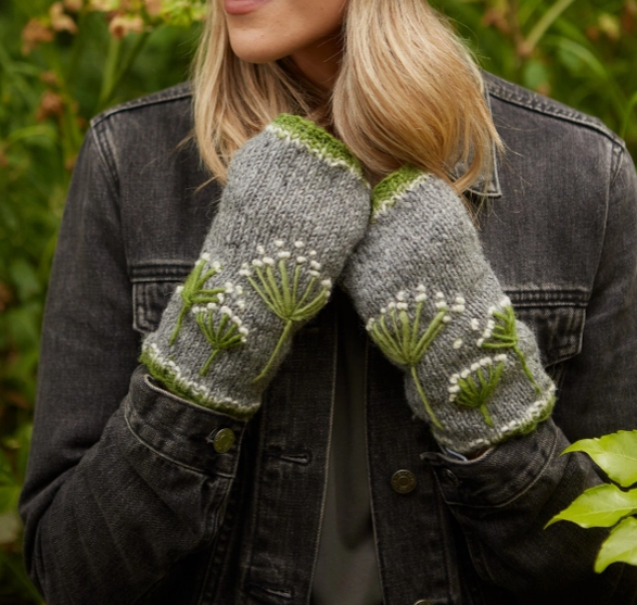 Embroidered Cow Parsley - Knitted Wool Handwarmers